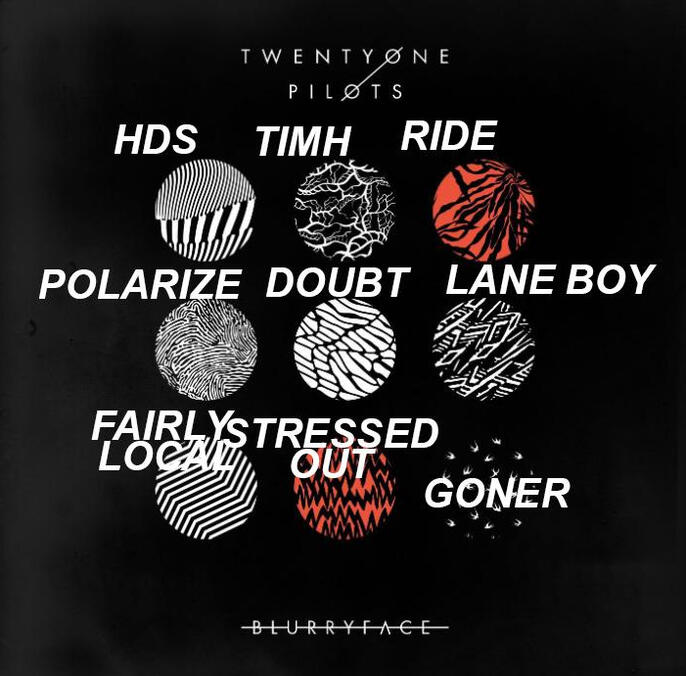 The Blurryface album cover contains dots with different patterns that represent certain songs on the album.